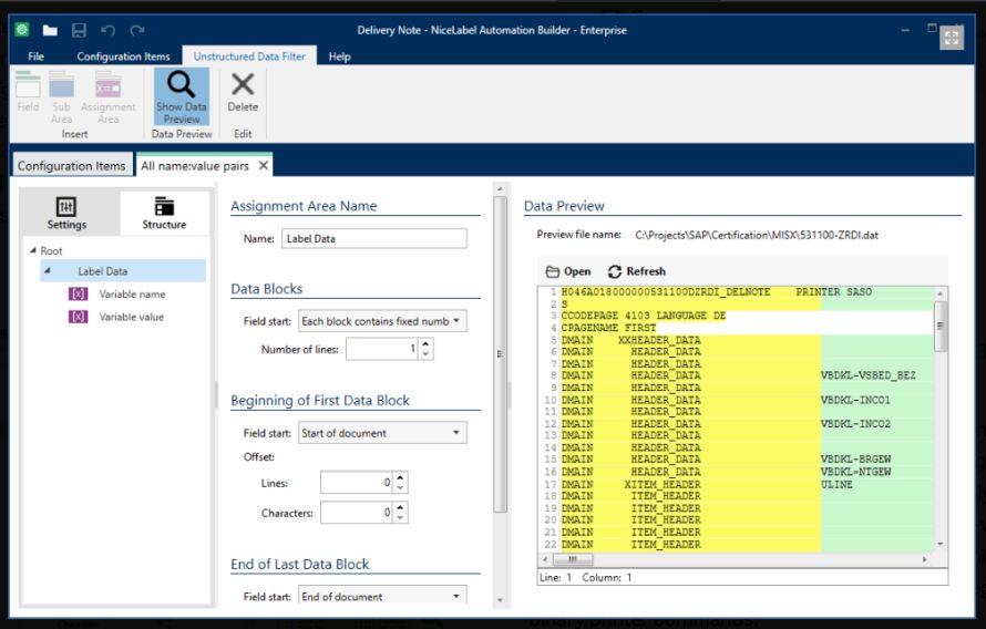 NiceLabel automation and integration extracts data from any format. The data mapping tool helps you map data from XML, CSV and fixed-width text files as well as unstructured formats such as legacy reports and even binary printer commands.