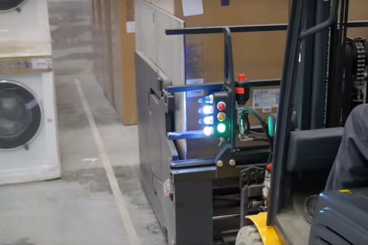 Codetrack directs the high bay truck to the next location where the picker scans the cartons. Image: Still (another warehouse).