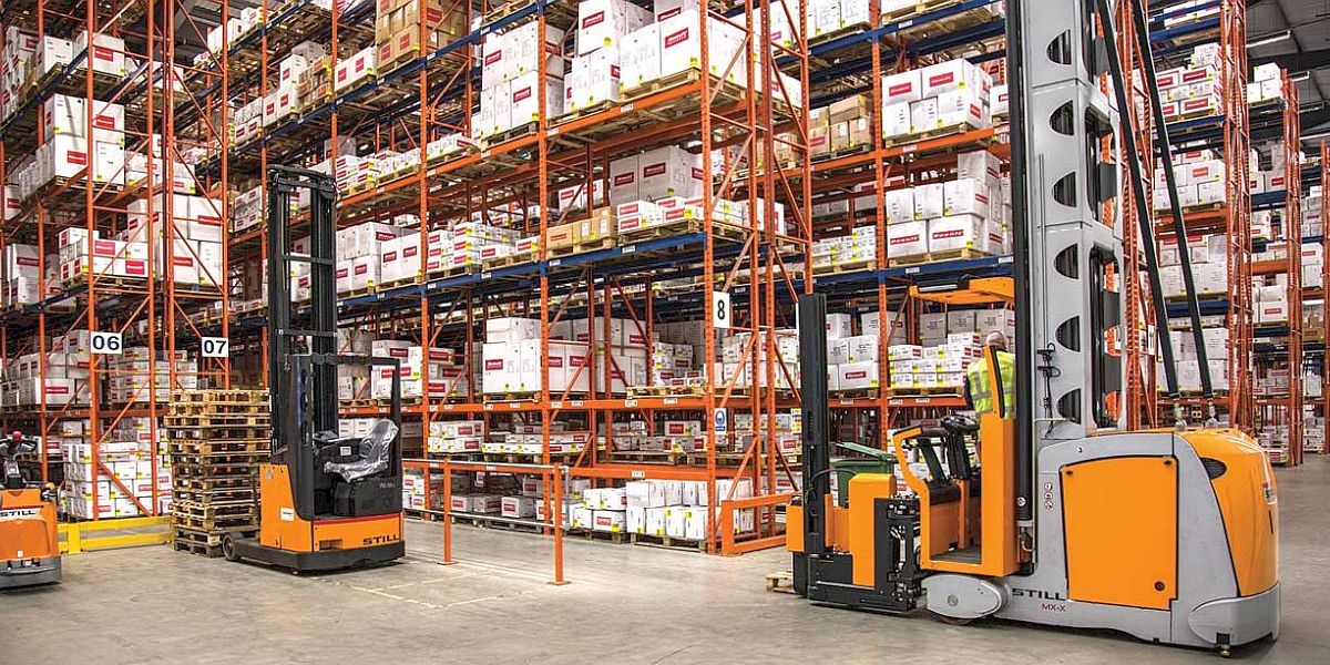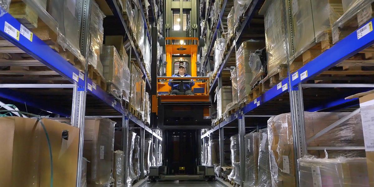 Codetrack directs the high bay truck to the next location where the picker scans the cartons. Image: Still (another warehouse).