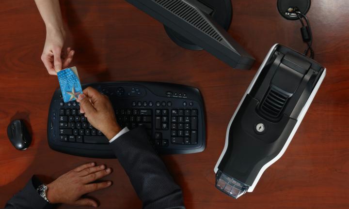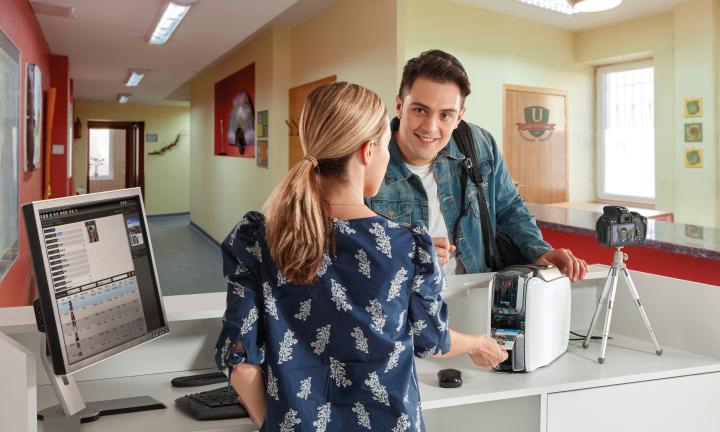 Your printer shouldn't dictate where you can issue cards — it should fit wherever card printing is needed. From the minimal footprint and the slimmest profile to the lowest clearance in this printer class, the ZC100 was designed to fit in the most possible places — including under a counter or shelf.