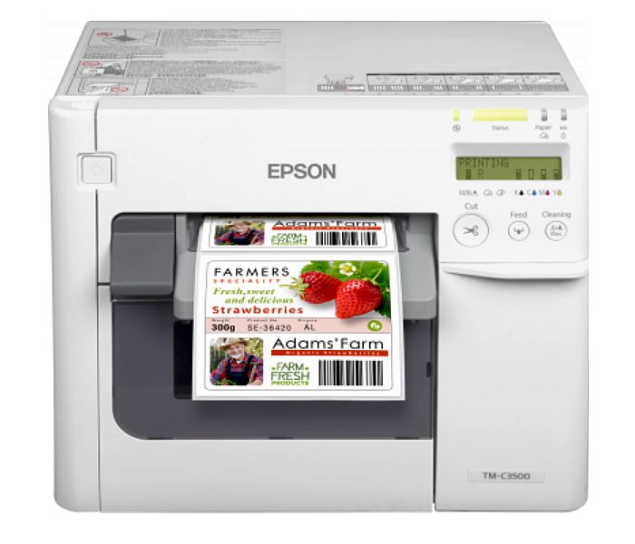 When brand graphics cover a minor part of the label (less than 50% of its area) print everything on plain labels with a Colorworks printer.