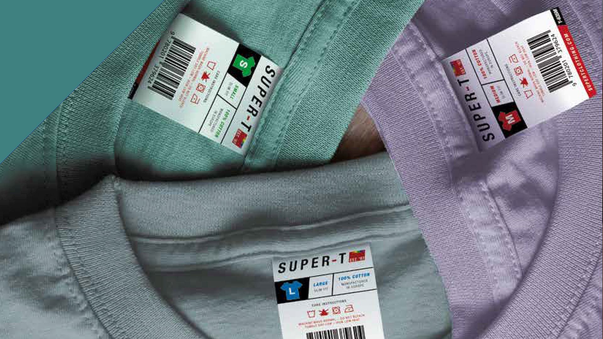 Woven polyester labels sew in or iron on to clothing, fabrics and furnishings (e.g. carpets, mattresses)