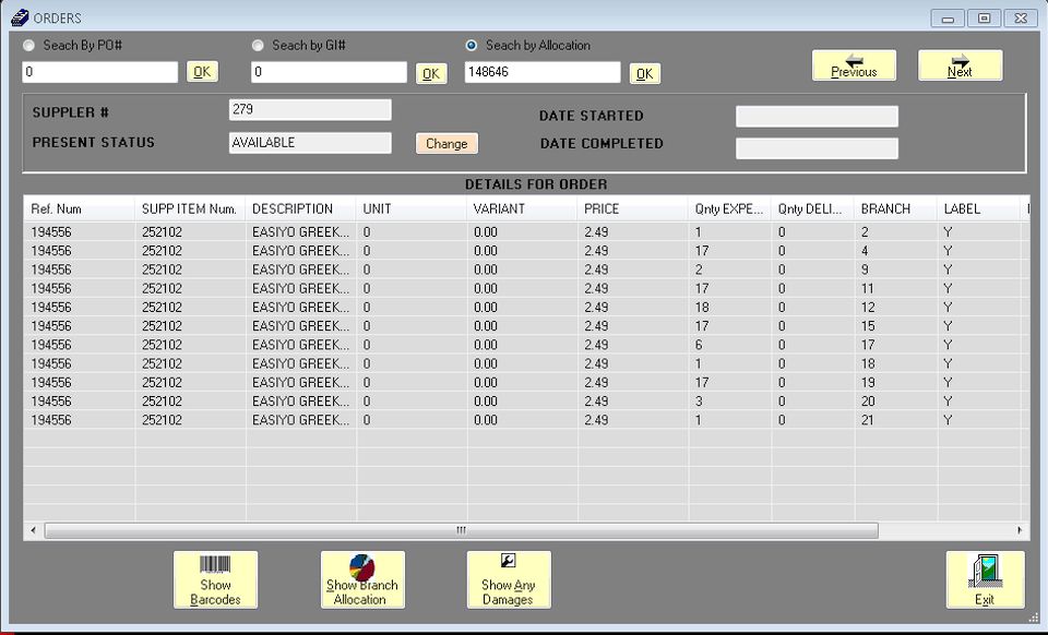 Codetrack imports purchase orders and store allocations from the point of sale system.