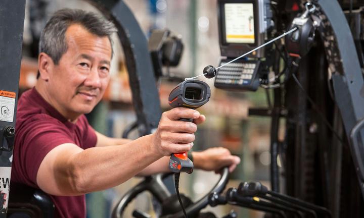 Operators of fork trucks equipped with vehicle-mounted mobile computers, such as the Honeywell Thor™ series, will appreciate how the full-range scanning capability of 1980i allows